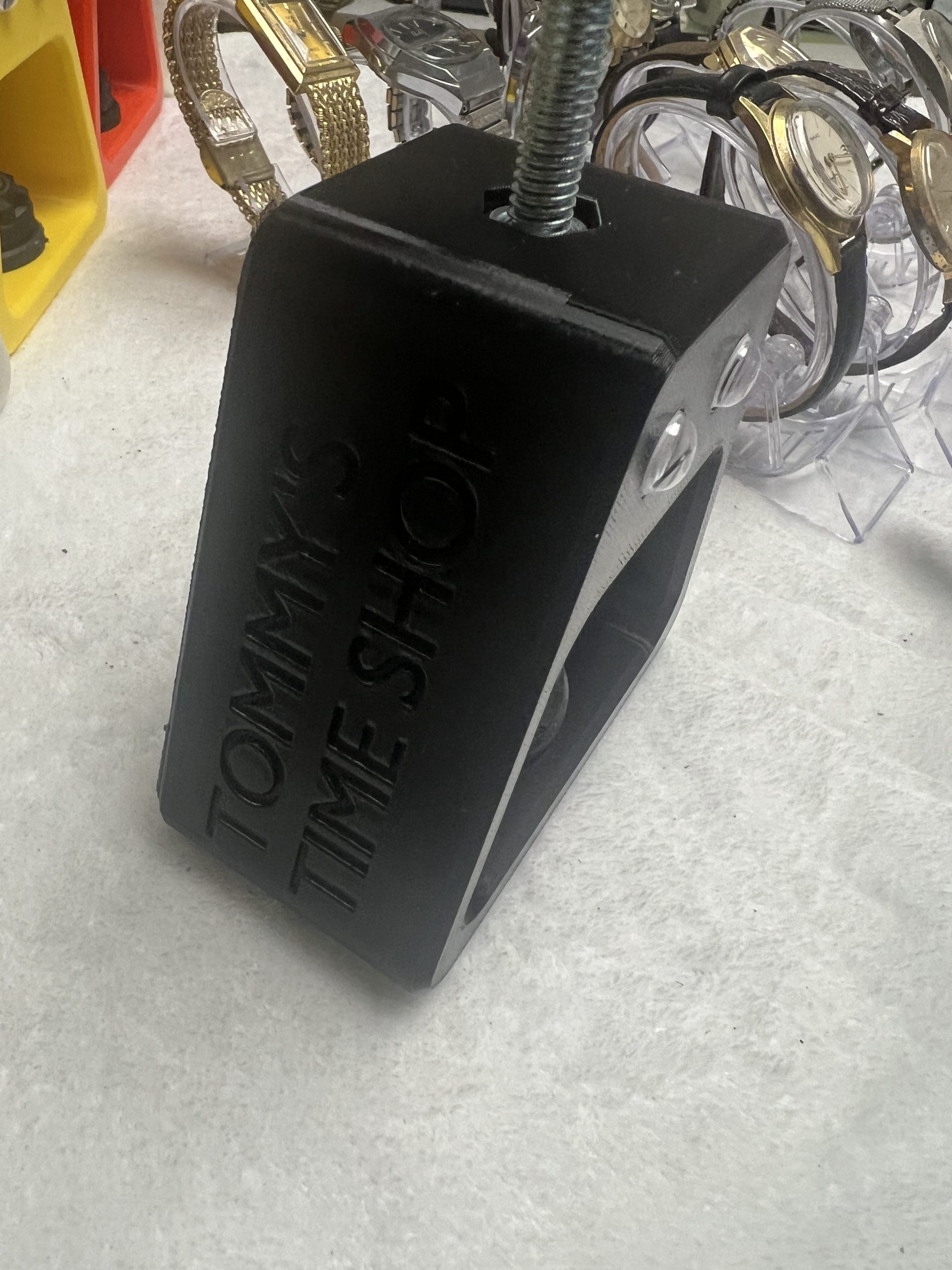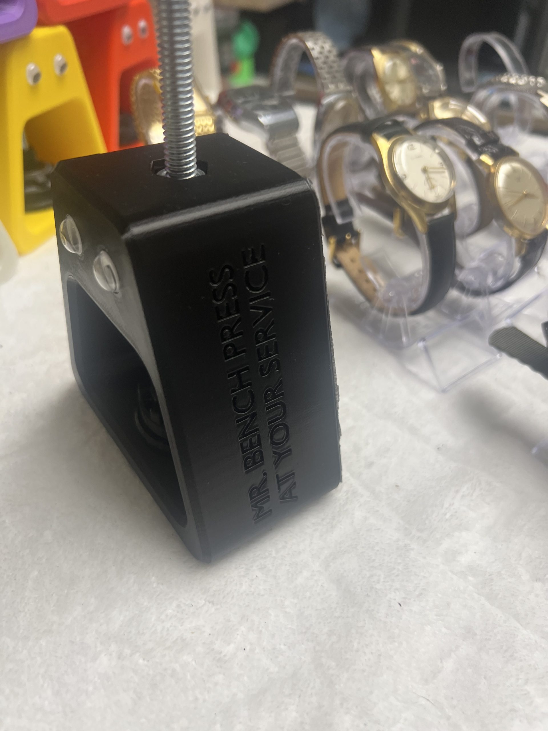 The lovable, and functional case back press was just a 3d printed press that sat around for when Tommy needed to close Timex indiglo and other complicated to close press fit casebacks.